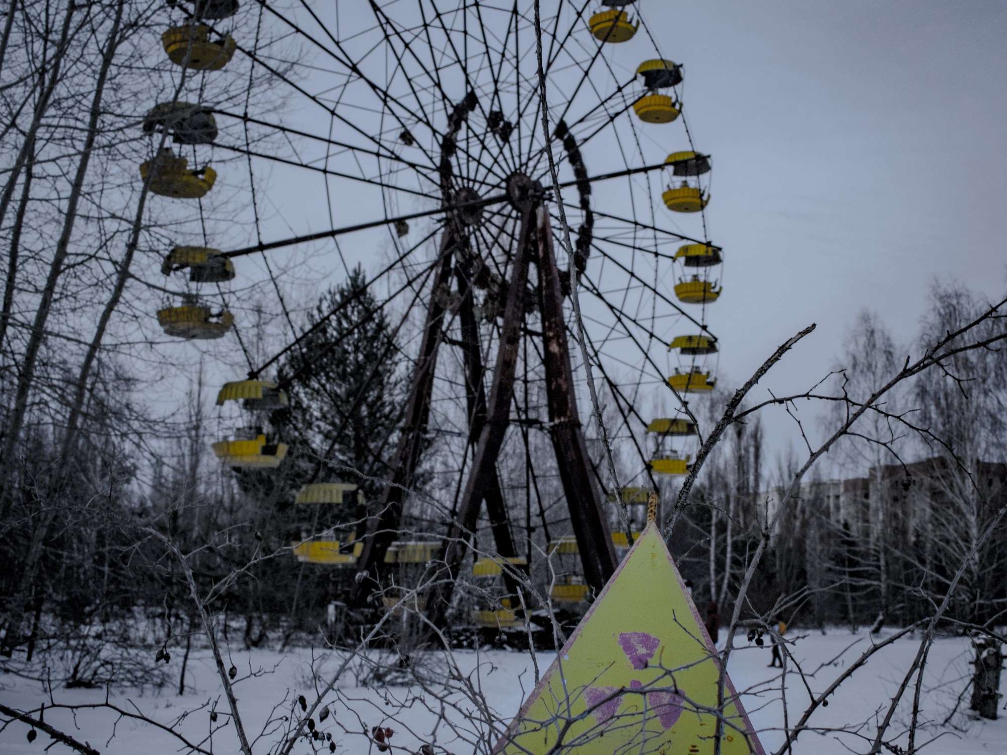 I was so lucky to have the opportunity to explore this landscape in the snow. This made my images more atmospheric and barren. The white of the snow highlights the few spots of colour in this empty sad place void from life. White is an inherently positive colour which juxtaposes the sad tragedy that occurred here.